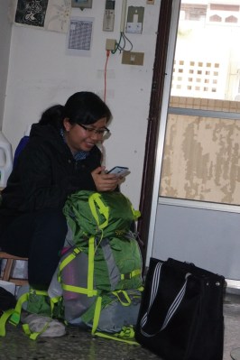 Đang sắp xếp đồ vào vali và đợi đứa bạn để chuẩn bị hành trình di chuyển lên điểm leo.