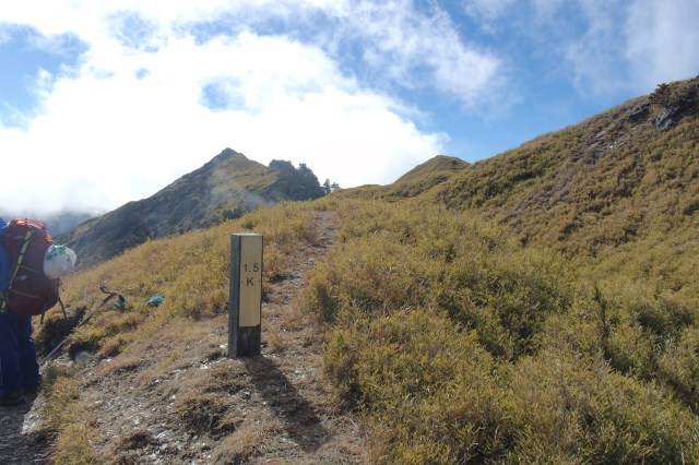 Cột mốc báo 1.5 km. View nhìn từ cột mốc này rất đẹp, bao quát cả một vùng trời.