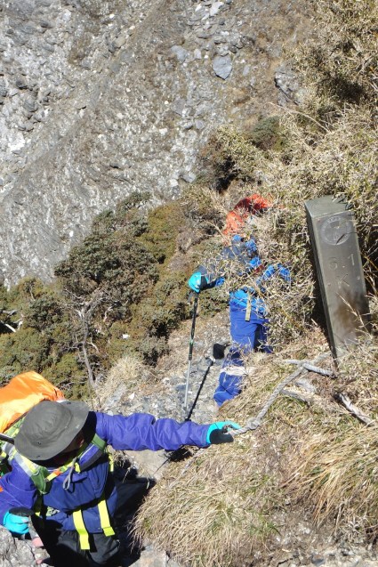 Và tiếp theo…..Nhìn cái này xong là chóng mặt rồi, muốn bỏ cuộc luôn, dốc nghiêng khoảng 80 độ, gần như thẳng đứng, phía dưới là vực thẳm. Có sợi dây thừng vắt vẻo bắt ngang núi cho bạn niú giữ. Xảy chân một phát là về gặp tổ tiên.