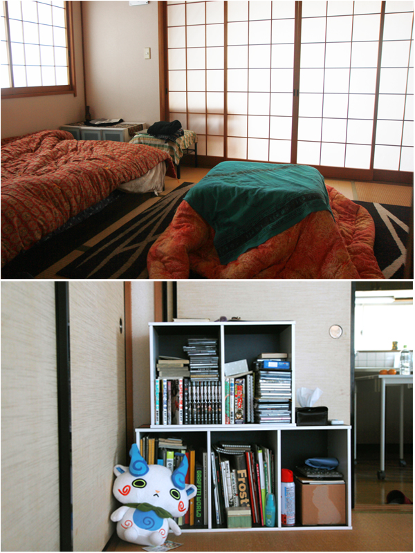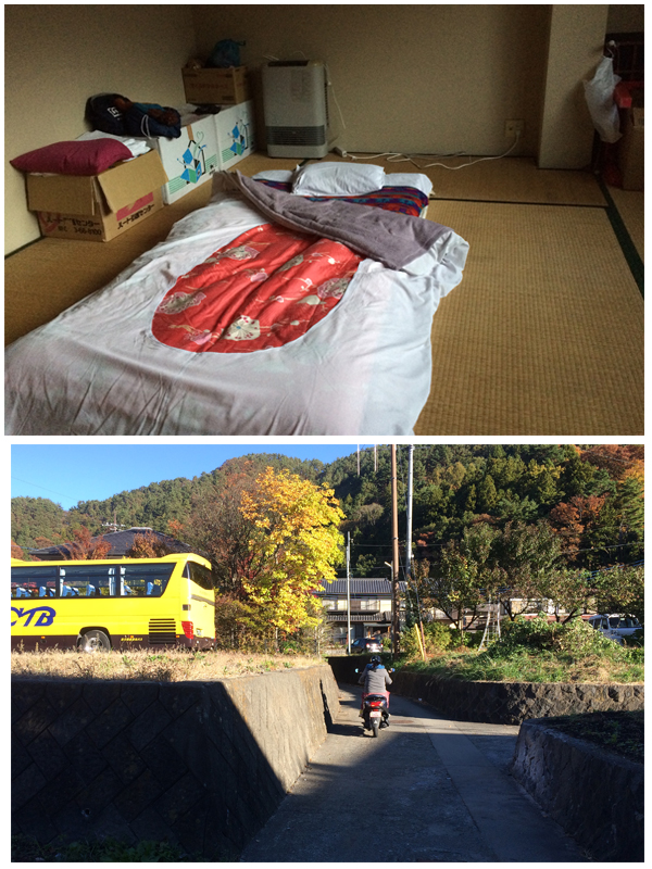 Chỉ có ở couchsurfing, mình mới được ở trong căn nhà truyền thống kiểu Nhật lọt thỏm giữa núi rừng, nhà 8 gian rộng không vách ngăn với 80 cửa lùa với 800 view cây cối xanh ngát xanh. Chỉ có ở nhà dân, mình mới được ở trong căn phòng kiểu Nhật dễ thương vô đối với chiếc bàn sưởi điện như trong fim quặc quạ đô-rê-mon hồi xưa mình có coi á… cái phòng thiệt cưng dễ sợ luôn nạ