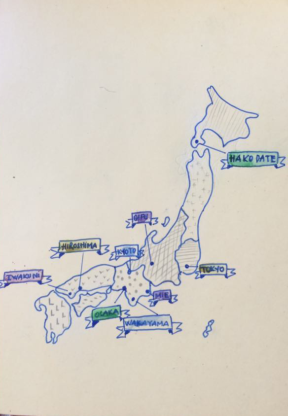 + Osaka – Kyoto – Wakayama – Tokyo – Hakodate – Hiroshima – Iwakuni – Nagoya – Mie