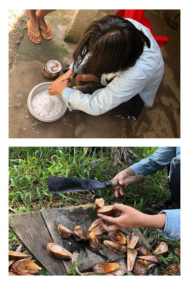 Vui chưa, nè thì nạo dừa, nè thì chặt dừa nước.