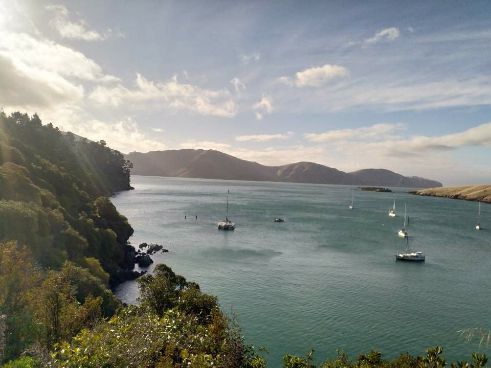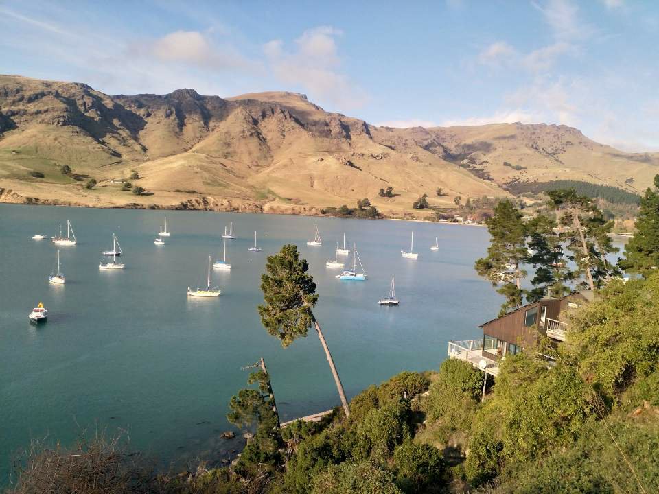 Ngôi làng này nằm ở cảng biển tên là Diamond (Diamond Harbour), chỉ mất 10 phút đi phà. Mình bắt một chuyến xe buýt từ trung tâm thành phố ra một vùng ven biển nhỏ xinh tên Lyttelton. Mình ra đây đúng vào thứ 7 nên có chợ rau quả địa phương. Khu chợ nhỏ xíu như chợ quê, mỗi sạp hàng cũng chỉ trưng bày vài món đồ nhà tự làm như bơ đậu phộng, bánh mì, phô mai… hoặc đồ tự trồng như rau củ organic. Mình dạo quanh một vòng chợ để tham quan rồi ghé quán cà phê làm một ly flat white trong khi đợi chuyến phà kế tiếp.