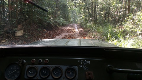 – Xe trung chuyển đưa nhóm từ bến xe KBang vào trạm kiểm lâm khu bảo tồn Kon Chư Răng, từ đây nhóm đổi sang xe UAZ đi xuyên rừng để đến điểm bắt đầu đi bộ.