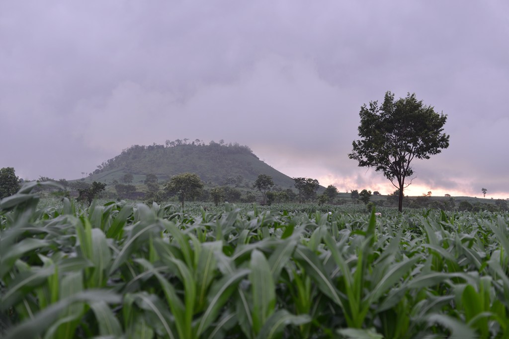 Bắp ở đây chạy dài như vô tận, bạt ngàn mênh mông lấp ló dưới những áng mây. Bắp trùng trùng điệp điệp, có lẽ dòng họ 3 đời bắp đều cư ngụ nơi này, bắp nhi đồng chỉ cao hơi mắc cá chân kẻ du hành,  bắp trưởng thành khỏe khoắn choàng vai bá cổ vỗ về kẻ lang thang, bắp lão làng thân thẳng tắp khẳng khái cao qua khỏi đầu người. Bắp bao đời nay vẫn thế, hễ thấy khách thập phương ghé thăm là cúi lá xin chào. Hạnh phúc không bắp ơi, khi tam đại đồng đường cùng sống chan hòa hạnh phúc dưới bầu trời Chu Bluk này đây. ^^
