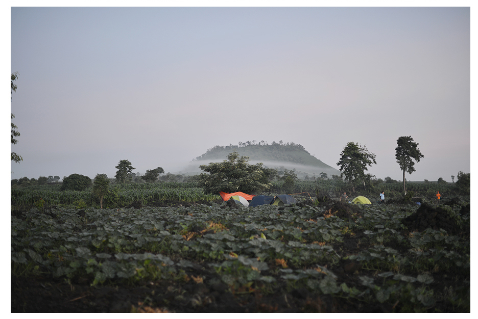 – Buổi sớm thức dậy, từ nơi nhóm cắm trại nhìn lên bầu trời, thấy mây trôi bềnh bồng vắt ngang Chư Bluk, mình lại liên tưởng phim Tòa Lâu Đài Trên Không.