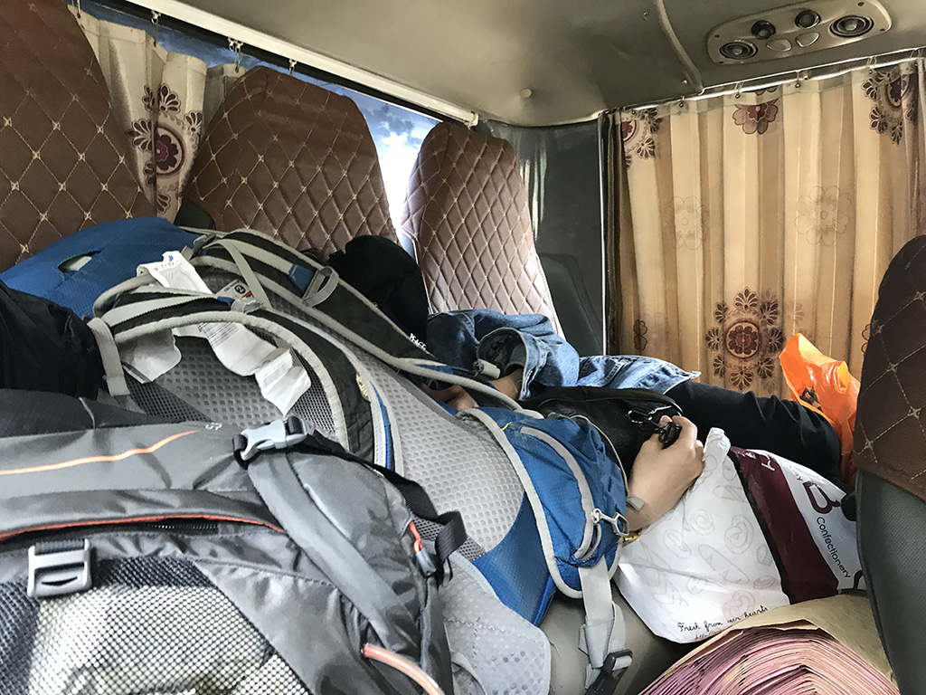 Vì muốn tiết kiệm chi phí, lượt đi mình chọn xe khách Mạnh Tân để lên huyện Bá Thước, xe đón khách ở đường quốc lộ. Thực ra đây là xe dù như từ miền Nam mình hay gọi. Đông vui nhộn nhịp như chuyến xe xa xứ chở bà con về quê ăn Tết, người người và hàng hoá cứ thế đan xen nhau, trên xe có cả hương nước hoa mùi sầu riêng mà mình rất thích nữa chứ. ^^ Chỉ 50K/người thì mình không đòi hỏi gì thêm, vui vẻ ngồi ngó nghiêng nhìn lướt qua cuộc sống đồng bằng phố thị đến nét đẹp nông thôn miền núi Thanh Hoá.