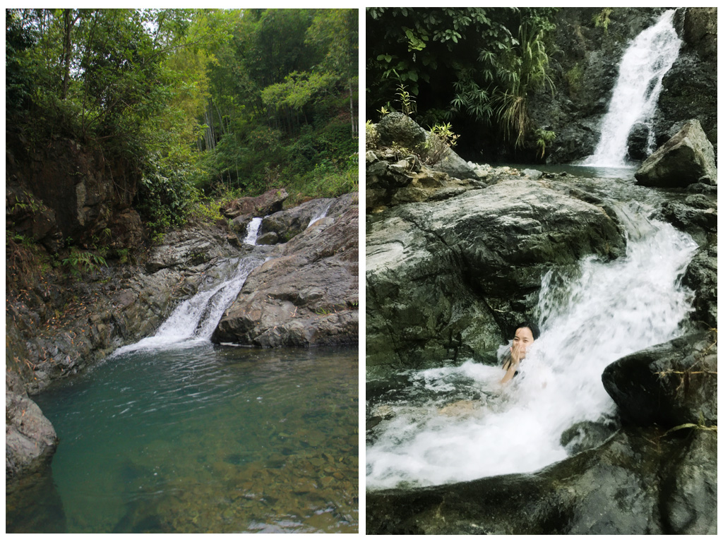 Thác ở đây nhỏ nên cảm giác như của riêng mình vậy, mỗi tầng đều có nét hay ho của nó. Chỗ nước xanh phẳng lặng như chiếc hồ bơi xinh xinh, chỗ hố sâu tạo thành bể sục mát-xa vừa đủ 1 người, chỗ tạo thành máng trượt uốn lượn xuống lòng hồ,… mỗi lần lên tầng cao hơn, mình tự nhủ sẽ tắm ở đây, ở đây và cả ở đây nữa. Mình sẽ tắm hết nước ở nơi này.