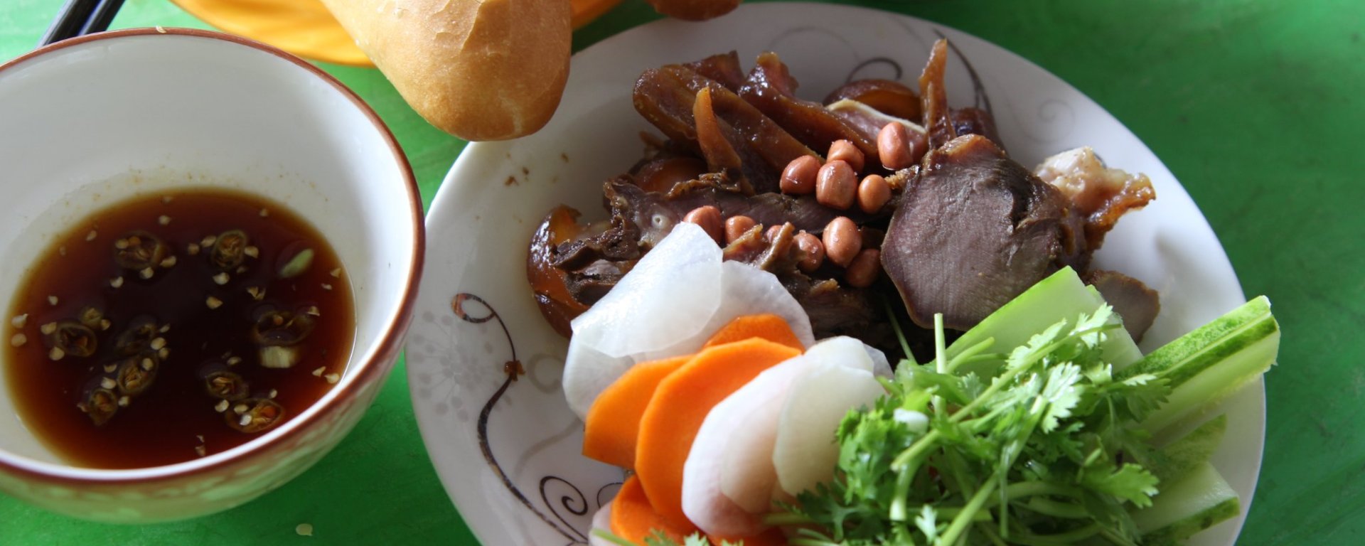 Với đứa không hảo bánh mì như mình, hôm đó cũng không kìm lòng nỗi phải gọi thêm 1 ổ và 1 chén nước chấm, mình đã ăn sạch sạch sanh không rơi rớt dù là một giọt. U là trời, con người ta quả thật biết sáng tạo ra mỹ thực thế gian mà, từ nguyên liệu quen thuộc lại có thể chế biến ra món ăn đặc sắc, có hương, đủ vị béo, chua, cay, ngọt, bùi và thơm mát.