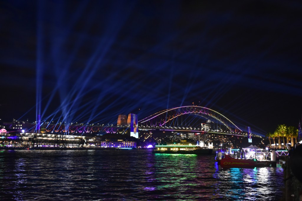 Mình đến Sydney vào đúng lễ hội ánh sáng Vivid 2023, có cả màn trình diễn fly cam trên bầu trời mang tên “Written in the Stars”, Và những thứ ánh sáng tựa những chú đom đóm biết đổi màu bay lên nền trời đen kịt, chúng nhấp nháy di chuyển một cách có trật tự để tạo ra bức tranh thiên biến vạn hóa….trong sự tán thưởng của đám đông khổng lồ ở phía chân cầu cảng.
