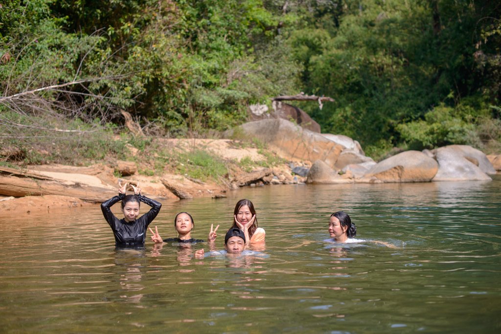… hổng có cái gì để chơi ngoài việc phải nằm thài bài trên đá xem mấy chiếc lá rung rinh trong gió, sáng thì tranh thủ tắm nắng trong làn nước mát trong, tối thì lén phén trộm nhìn tụi đom đóm tỏ tình với nhau, đêm đến nằm ngắm sao rơi rồi ngủ mê trong tiếng suối reo.